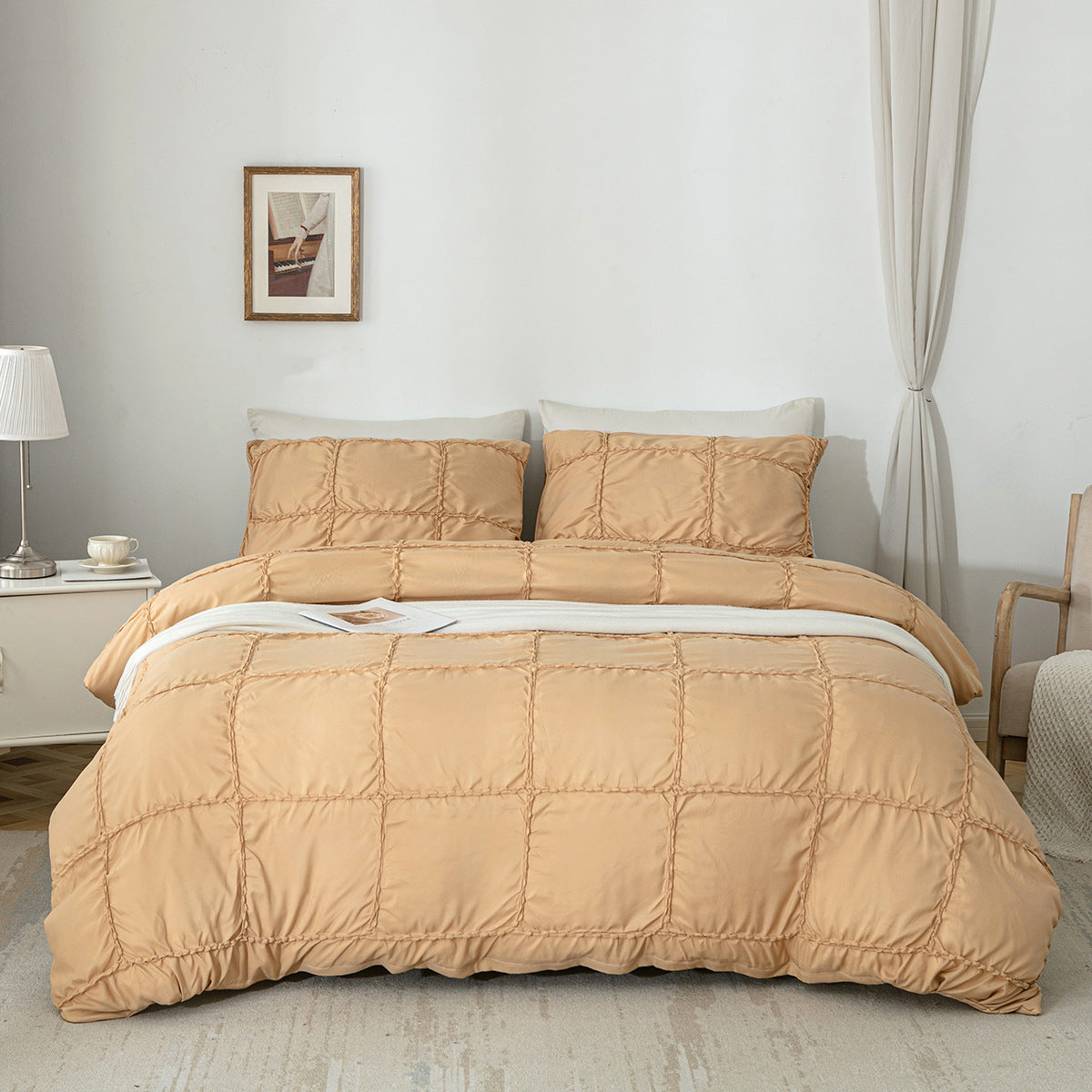 3-piece waffle quilt comforter and pillowcase bedding set