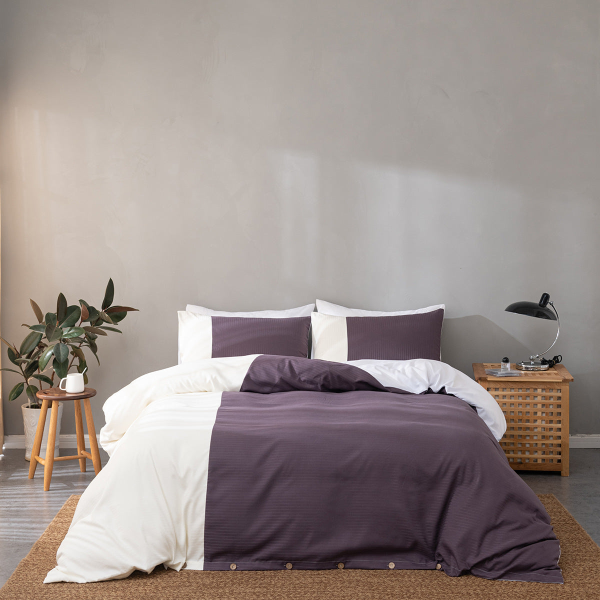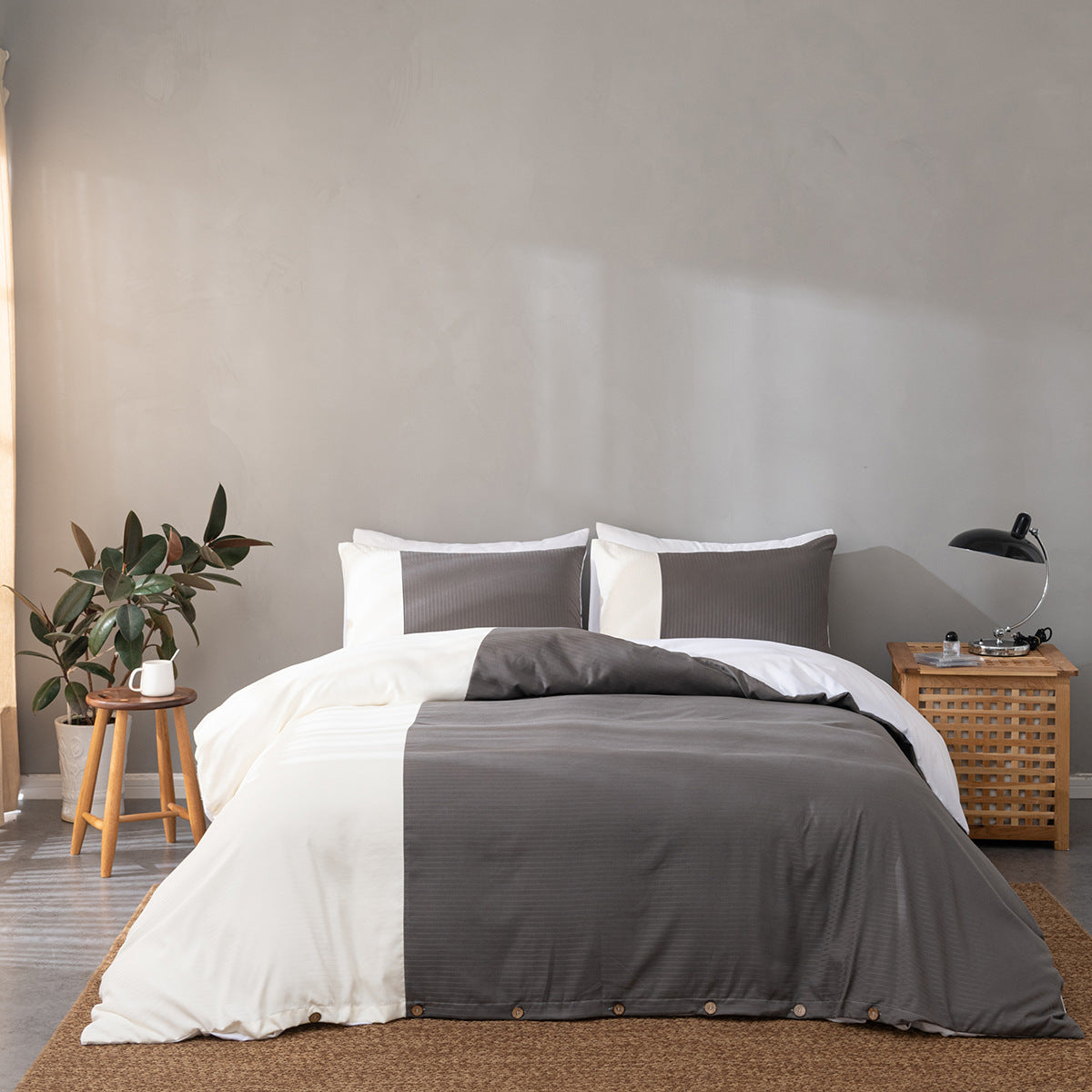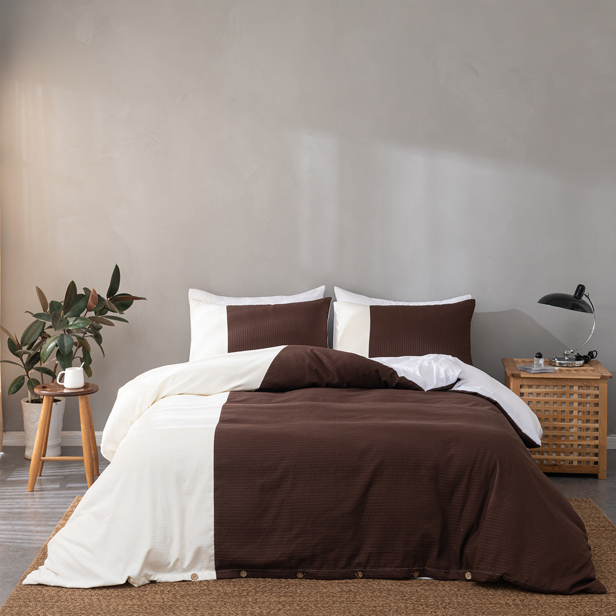 Fundas de almohada de algodón cepillado y ropa de cama de colores lisos