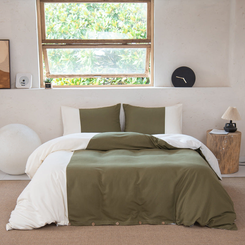 Brushed striped and grid pattern 3-piece bedding set – pillowcases and duvet cover, soft, comfortable, and skin-friendly