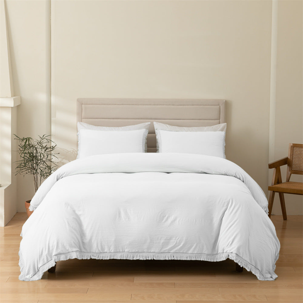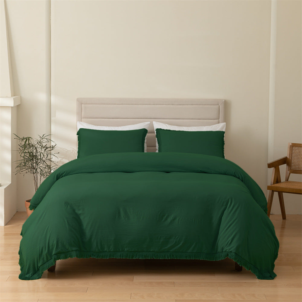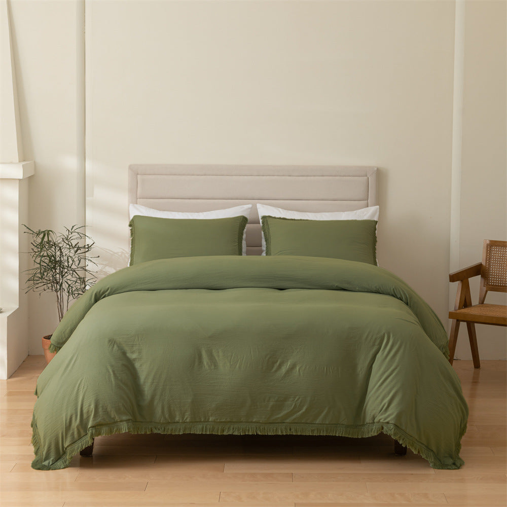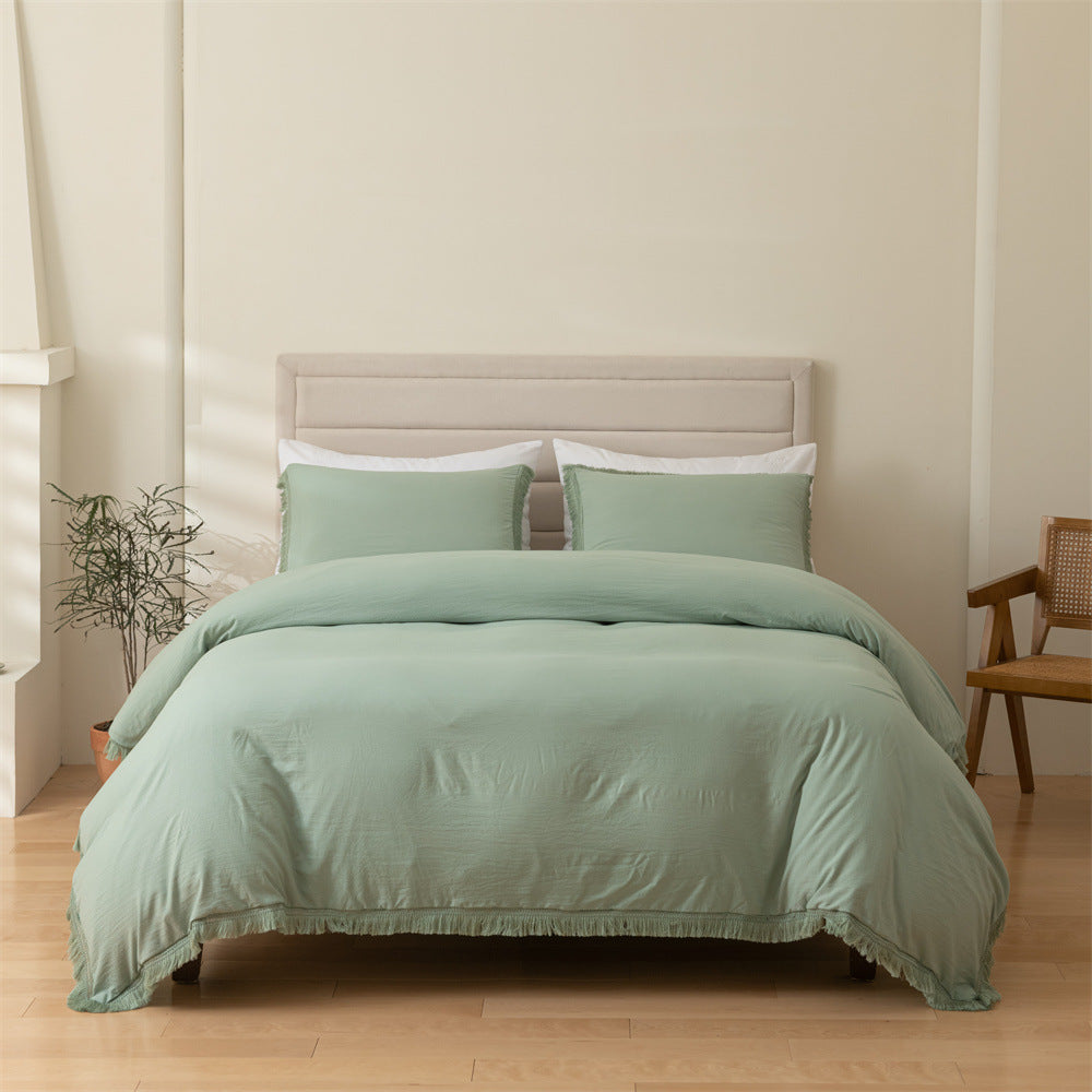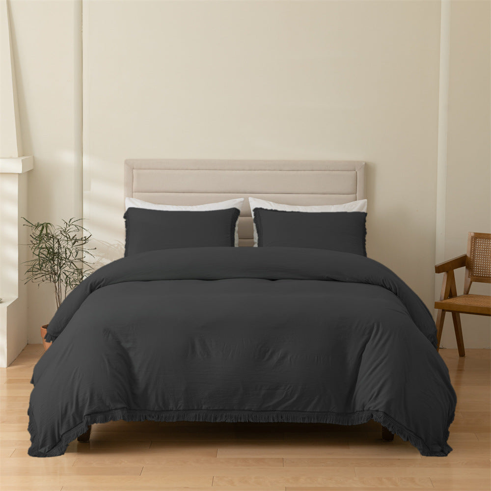 Tassel solid color duvet cover and pillowcase 3-piece set
